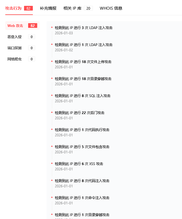 Spring 框架漏洞 检测规则[HW2020] Spring Data Rest RCE (CVE-2017-8046) 检测规则Jeecg-boot v2.1.2-v3.0.0 后台未授权 SQL 注入漏洞 检测规则XStream 反序列化漏洞 检测规则Java 代码注入 检测规则可疑远程调用协议 及 jdbc 协议调用 检测规则深层路径穿越攻击 检测规则XML 实体注入漏洞 (UTF-7) 检测规则LDAP 注入 检测规则MongoDB NoSQL 注入 相关规则(query/form/json key)访问敏感文件的请求 检测规则低危的命令执行 检测规则多款路由器命令操作系统命令注入漏洞 (CVE-2019-3929) 检测规则2