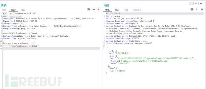 - 'contains_all(body, "code\":1", "base_url\":\"uploads\\/user")'