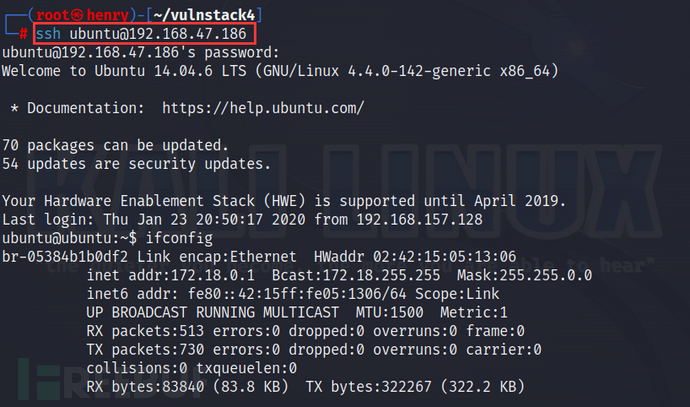 随后在kali中使用对应的私钥连接目标主机的ubuntu用户