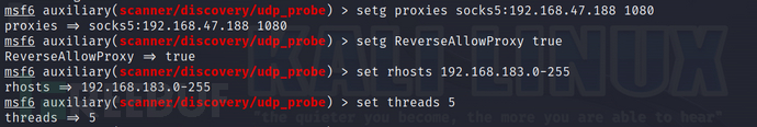 使用MSF的 scanner/discovery/udp_probe 模块来发现内网的存活IP,再配置个socks5协议