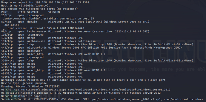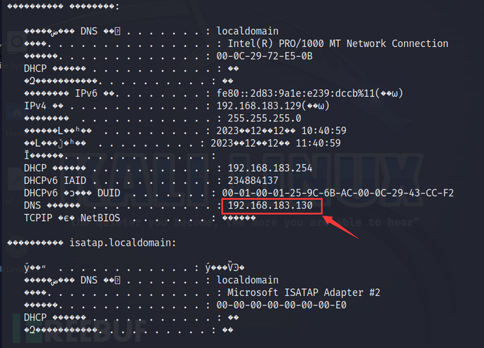 执行 ipconfig /all, 得知目标域控IP为 192.168.183.130,这也证实了nmap扫描结果的猜想