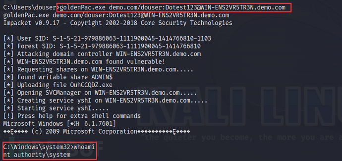 goldenPac.exe demo.com/douser:Dotest123@WIN-ENS2VR5TR3N.demo.com