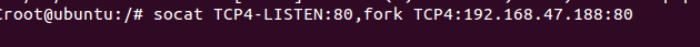安装完后使用socat命令进行流量转发: socat TCP4-LISTEN:80,fork TCP4:192.168.47.188:80