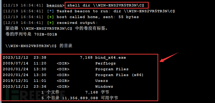 并查看域控的C盘目录: dir \\WIN-ENS2VR5TR3N\C$