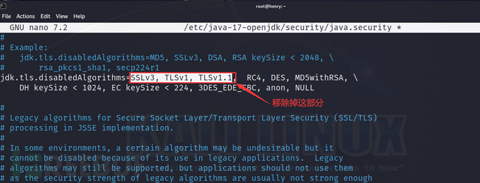网上说的解决方法是修改 java.security 文件,将 jdk.tls.disableAlgorithms 的值中涉及 tls 和 ssl 的移除掉,但是依然无法解决上线问题