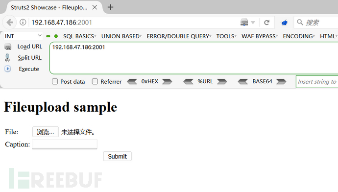 访问 http://192.168.47.186:2001/,发现是一个文件上传的页面,随便上传了一个图片文件,页面返回链接 http://192.168.47.186:2001/doUpload.action;jsessionid=1ljs4kw9xe4pukufqkw6zb11d,并没有返回上传文件的路径
