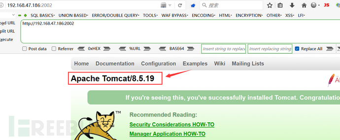 访问 http://192.168.47.186:2002,页面显示Apache Tomcat的版本为8.5.19,此版本有个 CVE-2017-12615 漏洞