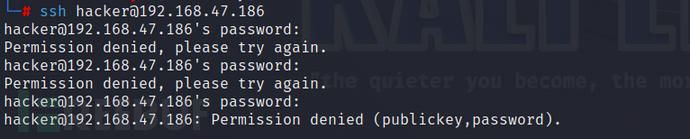 kali尝试远程登录刚创建的hacker用户,登录失败了,可能是配置文件限制了root权限用户的登录