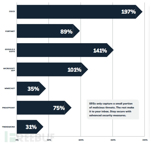 数据显示,SEG只能捕获一小部分恶意威胁,其余的都进入了目标的收件箱。随着电子邮件攻击的频率和严重程度不断增加,培训员工识别和报告恶意电子邮件,同时部署行业领先的解决方案来识别和修复主动绕过SEG的威胁成为至关重要的步骤。