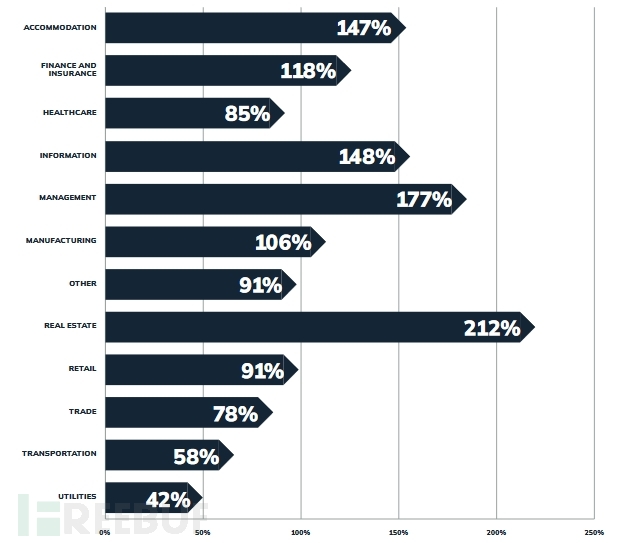 【绕过SEG的恶意邮件增长比例,按行业划分】