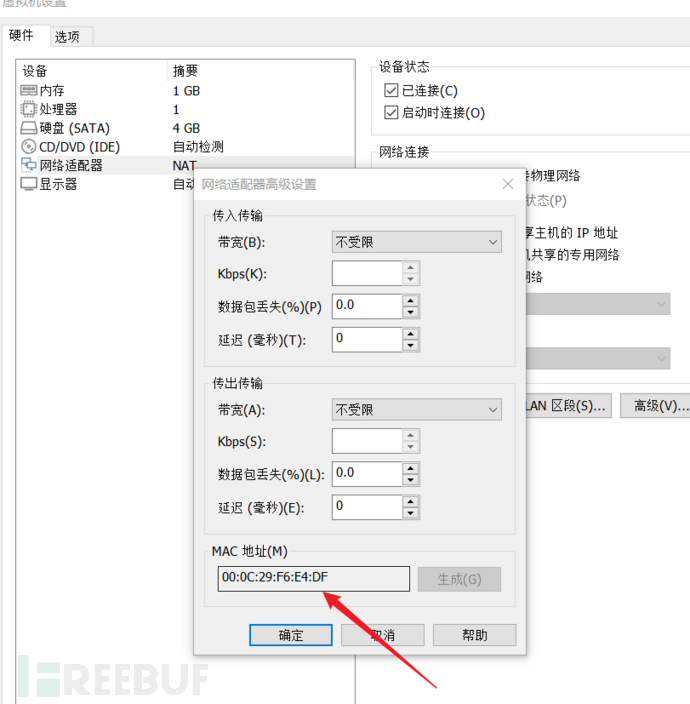 点击高级后可以查看DC-1的靶机MAC地址,便于扫描IP时识别