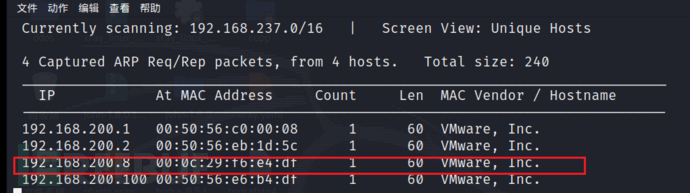 靶机dc-3的MAC地址,根据MAC地址判断IP地址