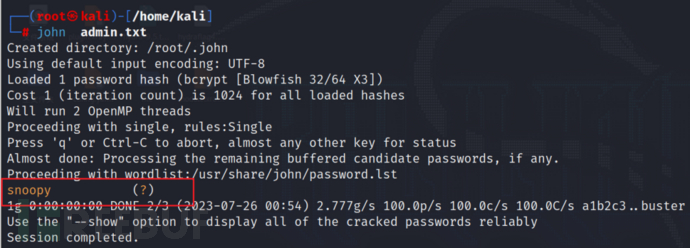 john admin.txt #破解