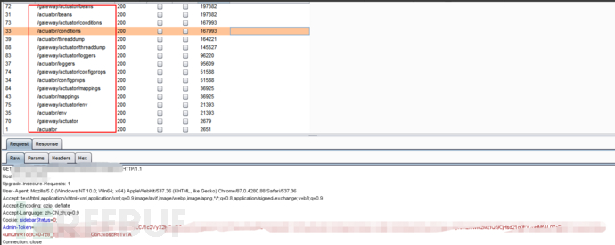 思路有了,我们先来看看是否有/jolokia或/actuator/jolokia接口,扫描发现没有,那就看看有没有/actuator/gateway/routes/