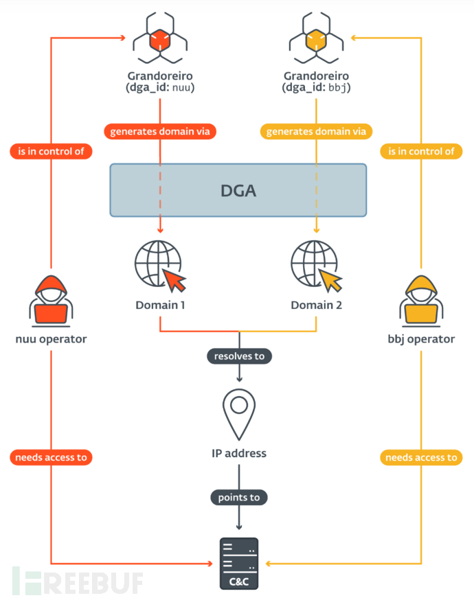 本文详细介绍了 Grandoreiro 的 DGA 算法,以及攻击基础设施的 IP 重叠。根据对攻击行动的跟踪,技术分析支撑了由巴西联邦警察牵头的执法行动,逮捕了 Grandoreiro 中职位非常高的运营者。