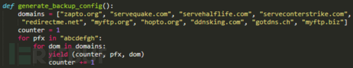 故障安全机制会采用主 C&C 子域名生成的部分逻辑,遍历所有条目并对其进行异或加密,最后当作前缀前置。