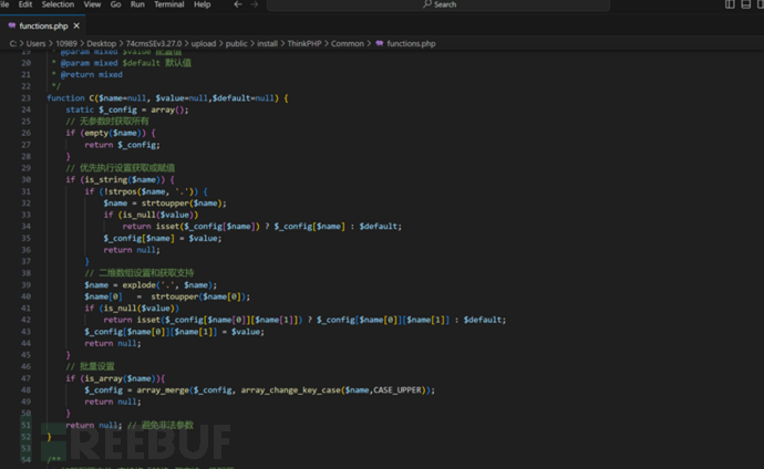 接着就是查看关键代码,比如functions.php文件中有一些系统的关键函数和一些过滤规则
