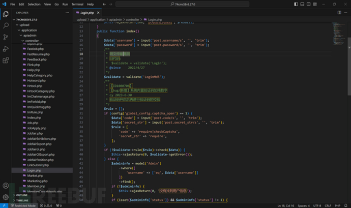 首先我们需要在源码文件夹中查看upload、login、export等源码文件,然后根据相关的功能模块进行代码审计。