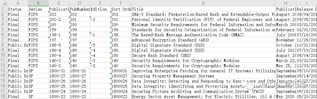 其实NIST官网已经这么做了,对外发布了一份动态更新的材料清单:https://csrc.nist.gov/CSRC/media/Publications/Shared/documents/NIST-Cybersecurity-Publications.xlsx