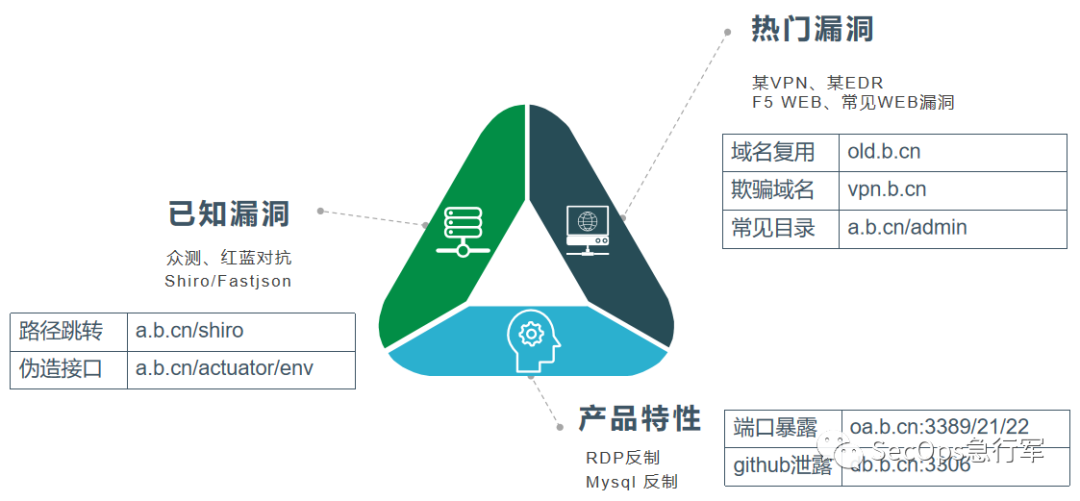 常见漏洞:弱口令、DB写webshell、phpstudy后门、Tomcat RCE、Shiro反序列化等。