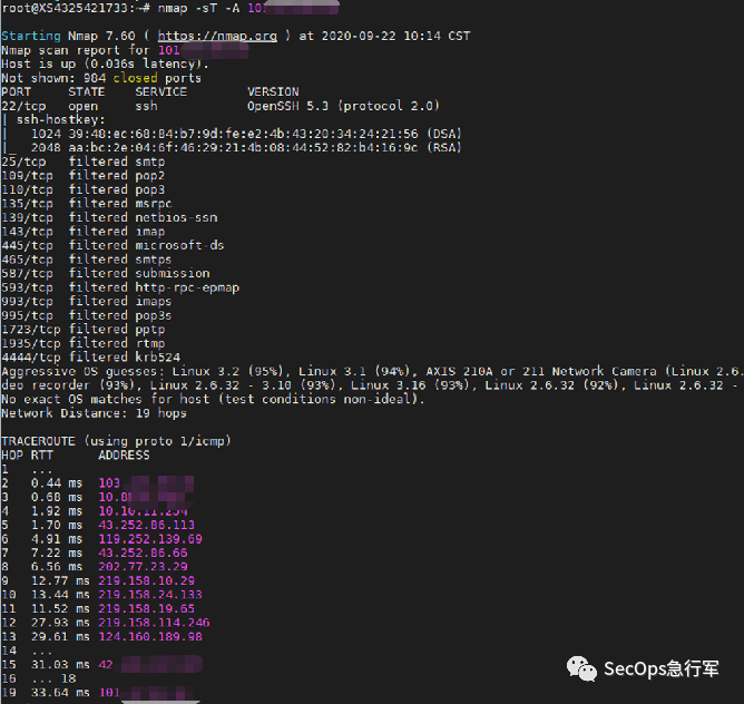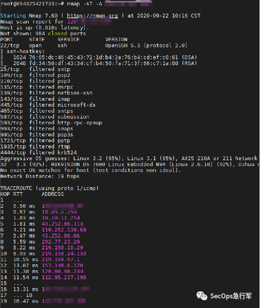 事情的起因是这样的,该单位监控发现,某一台服务器 A 突然在对其他服务进行扫描,显然不是A该干的事儿,看来A失陷了。