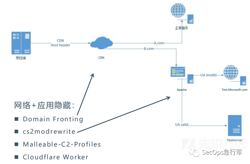 因为时间、演练规则、攻击人员水平等等原因,红蓝对抗期间的溯源反制和真实的APT攻击相去甚远。例如,现在常见的 C2 隐藏技术[3],在CDN和应用上进行双重判断,可以实现真实域名的完美隐藏,对溯源造成极大的困难。但在前面的案例中均未涉及。
