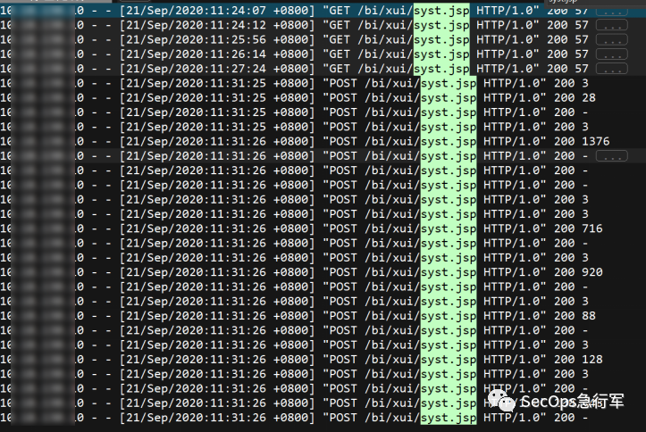 1、在攻击者访问记录中发现,该攻击者频繁在请求 syst.jsp 文件。