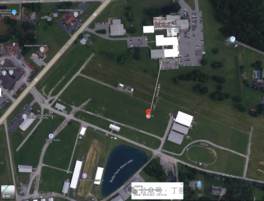 枪击现场位置:美国宾夕法尼亚州巴特勒附近的巴特勒农场展览场。坐标:40.8571223°N 79.9711779°W