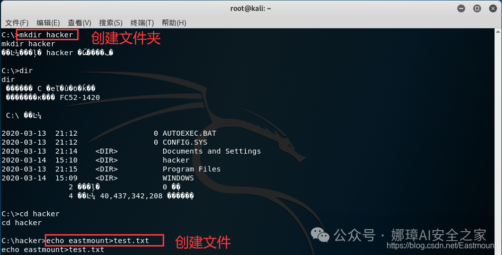 echo eastmount>test.txt