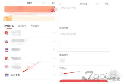 ,主页下方”实习汇报“功能,点击”添加“,点击下方”汇报给“。