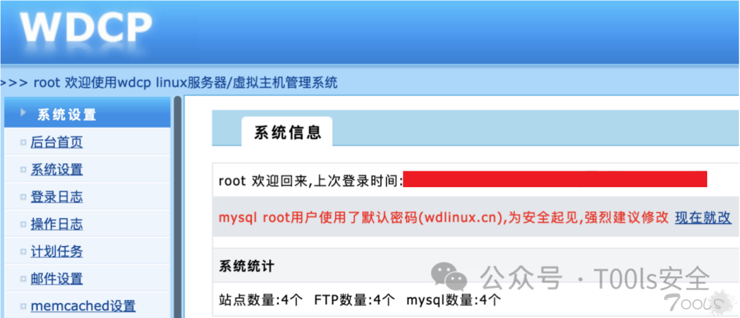 利用获取到的wdcp系统的账号密码成功登录wdcp管理系统