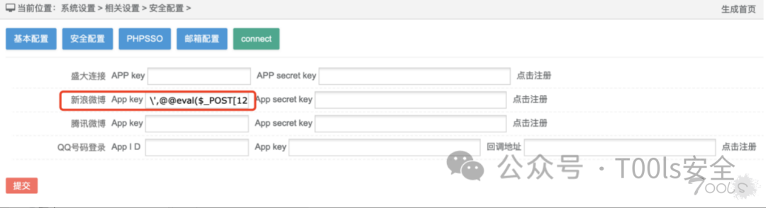 通过查询到的方法,在如下图所示处插入一句话即可成功Getshell
