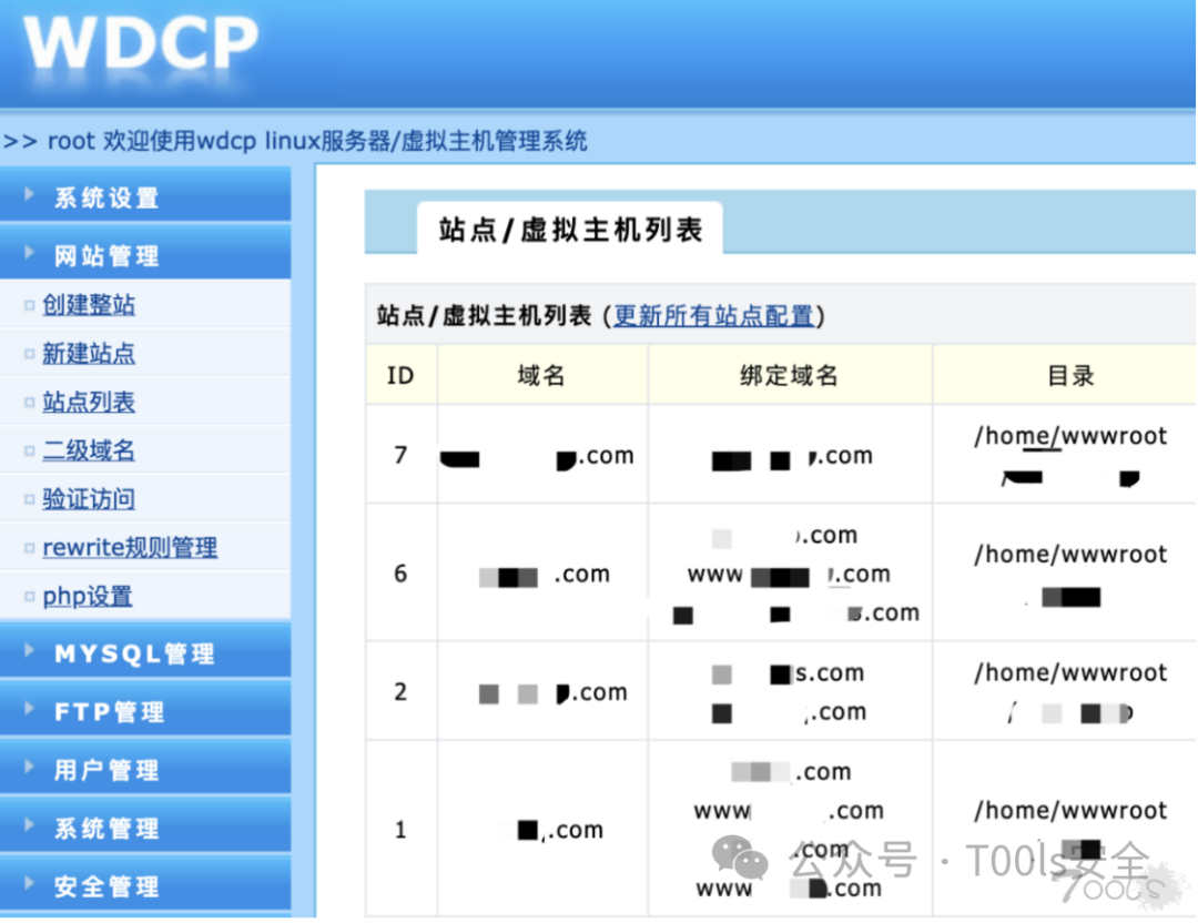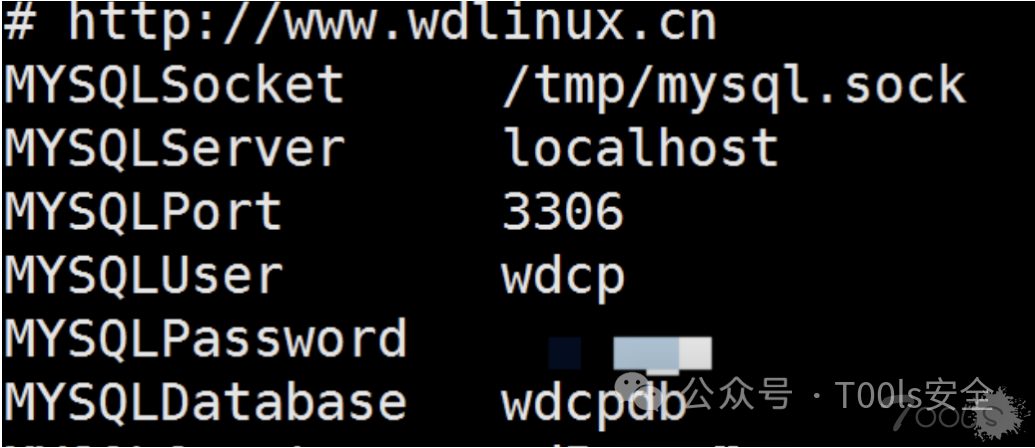 通过一番查找,找到了WDCP系统的mysql账号密码,如下图: cat /www/wdlinux/etc/pureftpd-mysql.con