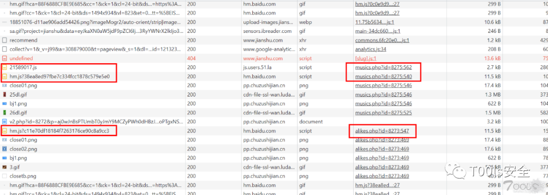 很快就找到了图片链接,查看调用栈,发现了两个可疑文件