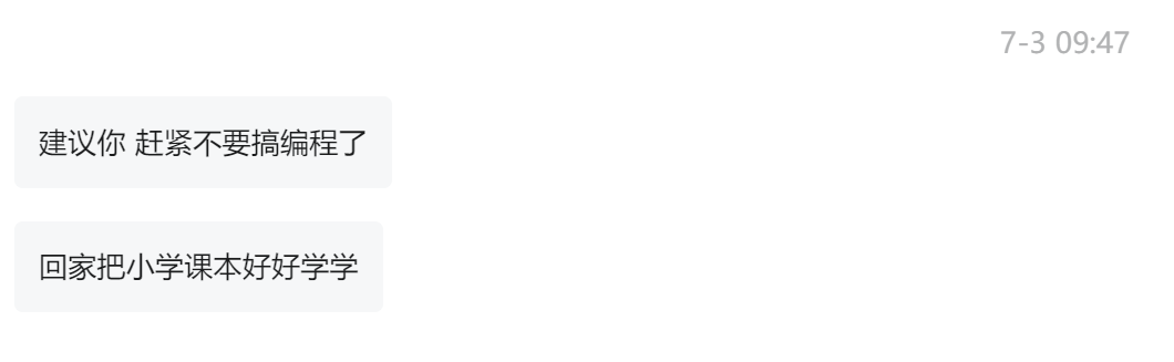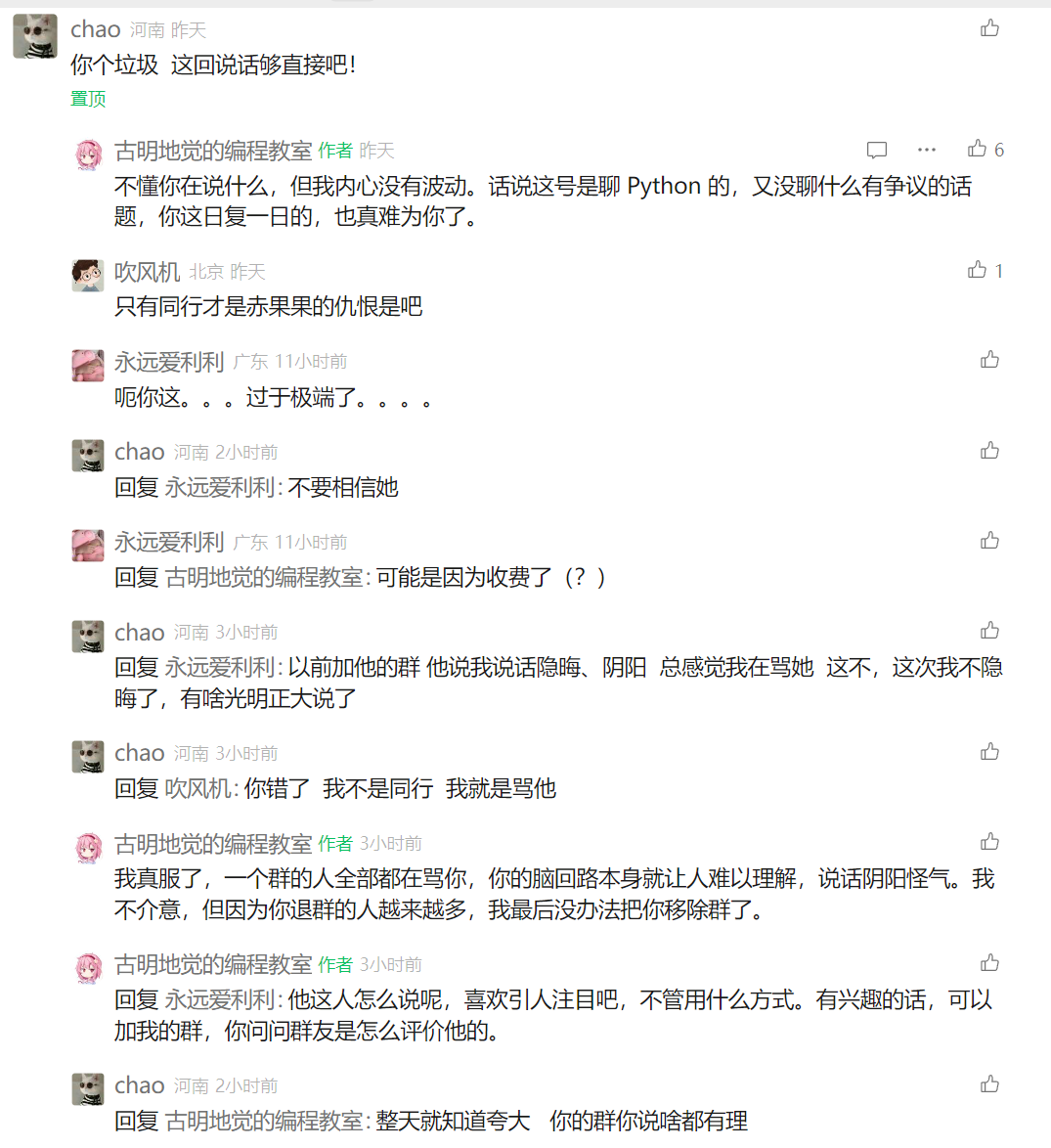 这个人以前也在我的群里面,有他在的地方必有争吵,似乎他很喜欢吵架。因为他很多老友都退了,最后没办法把他移出群了,但似乎他很喜欢我?