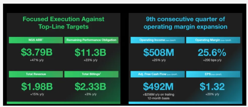 CrowdStrike近期的成功很大程度上归功于其新一代业务的快速增长。截至最近一个季度,CrowdStrike 涉及云计算和身份识别的营收同比翻了一番。
