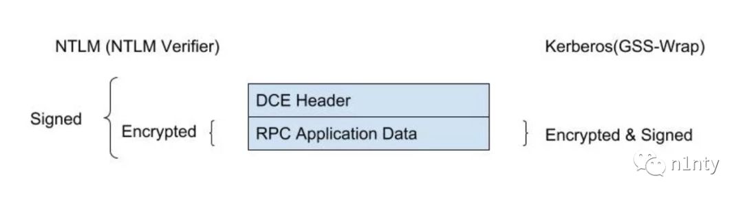 RPC 如果使用 NTLM 进行了身份验证,则要求后续的方法调用数据包的 RPC Application Data 部分是加密的,再将 DCE Header 与 加密后的 RPC Application Data 进行签名。CredSSP 第 7 步是直接对整个数据包进行加密与签名,所以不符合这个要求。所以在 RPC 的场景下,不能进行 NTLM Relay,只能进行 Kerberos Relay。