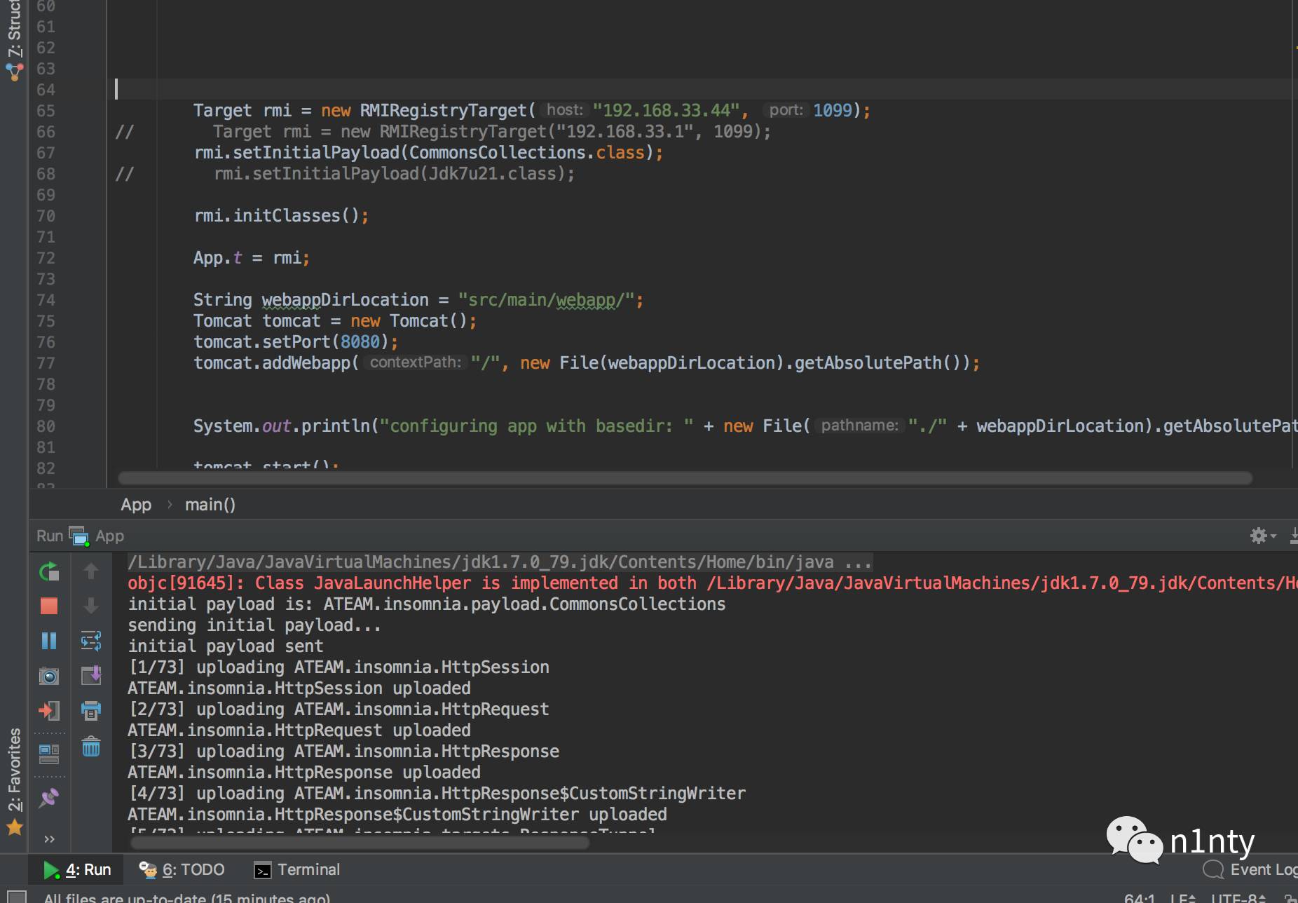 以上 4 个类在目标 Java 进程内被 defineClass 后,我们就可以直接向 RMI Registry 传送那 4 个类的对象了。