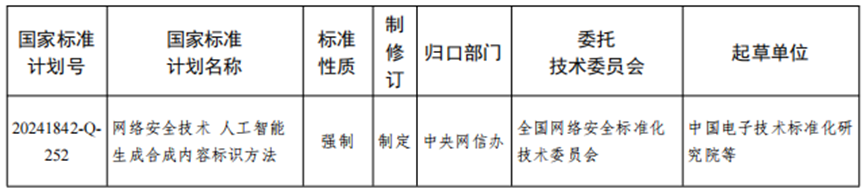 近日,国家标准化管理委员会下达的强制性国家标准制修订计划中,包括1项委托全国网络安全标准化技术委员会制定的标准项目《网络安全技术 人工智能生成合成内容标识方法》。
