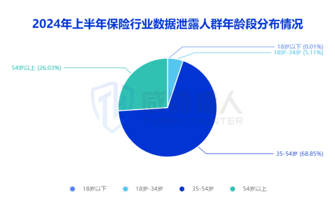 从区域维度来看,2024年上半年保险行业数据泄露人群最多的区域分别是:浙江、四川等地;从年龄段维度来看,35-54岁占比达68.85%;从性别维度来看,女性占比达78.44%。