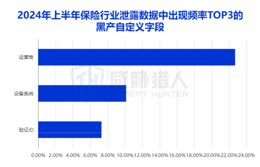 为了提高黑产数据交易价值及效率,黑产团伙会对数据进行清洗并自定义标签。2024年上半年,被泄露的数据中出现大量黑产定义字段,“运营商”、“设备系统”、“验证ID”等出现频率最高:
