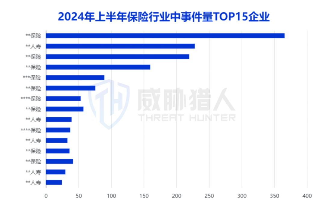 威胁猎人情报研究员对上半年存在数据泄露最多的15家保险机构进一步分析发现,这15家保险机构涉及的数据泄露事件占据了整个保险行业数据泄露总量的近80%,其中Top5机构数据泄露事件占比超50%。