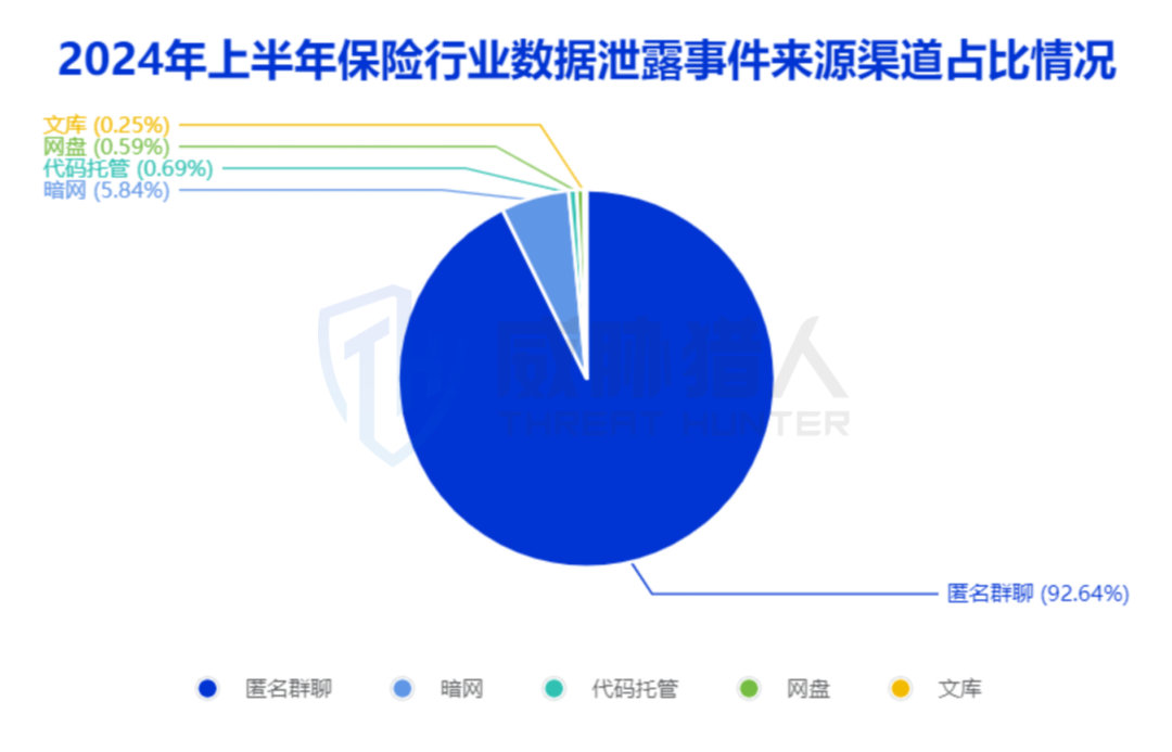 威胁猎人针对保险行业数据泄露的交易渠道进行分析发现,匿名群聊Telegram和暗网占比98.47%,是黑产进行非法数据交易的主要渠道,与2024年上半年全行业非法数据交易渠道分布基本一致。