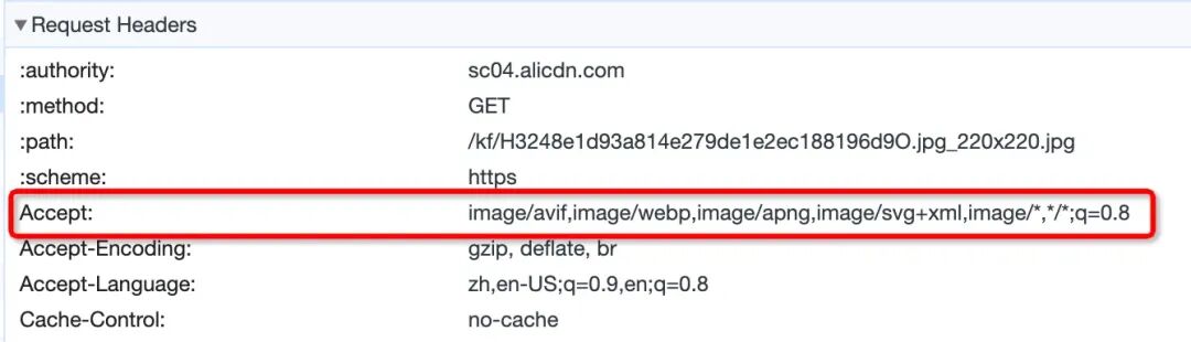 浏览器在在其图片请求时候会在 Accept 头部信息中声明支持的图片格式,可以利用这个在 CDN 识别,使用相同的图片地址,返回不同格式的图片内容。