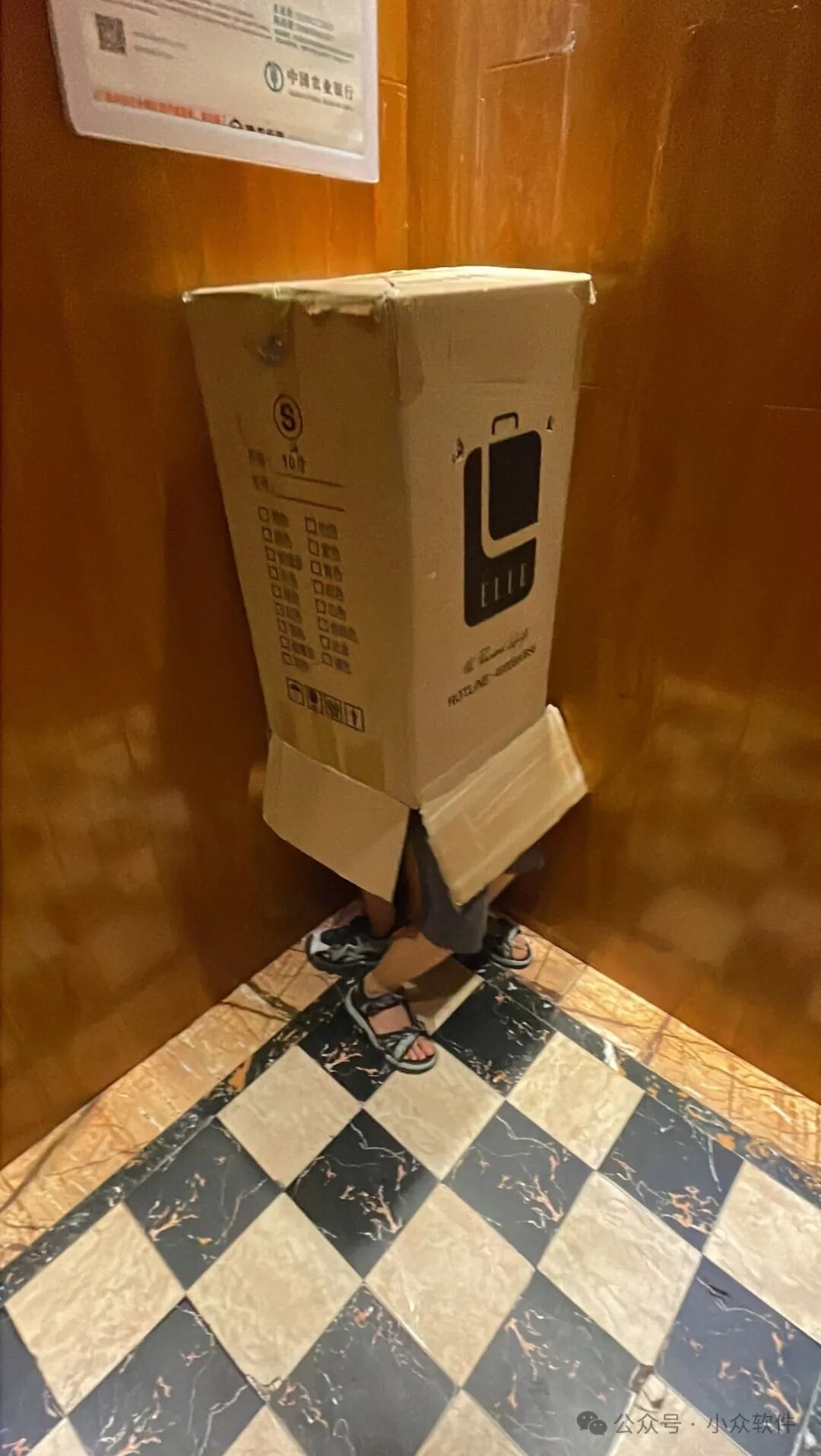 下午的时候去取了个快递,纸箱子就被他们两个拿去当纸盒人了,在回家的路上,差点被围观...我帮他们在纸盒子上戳了几个孔 😂
