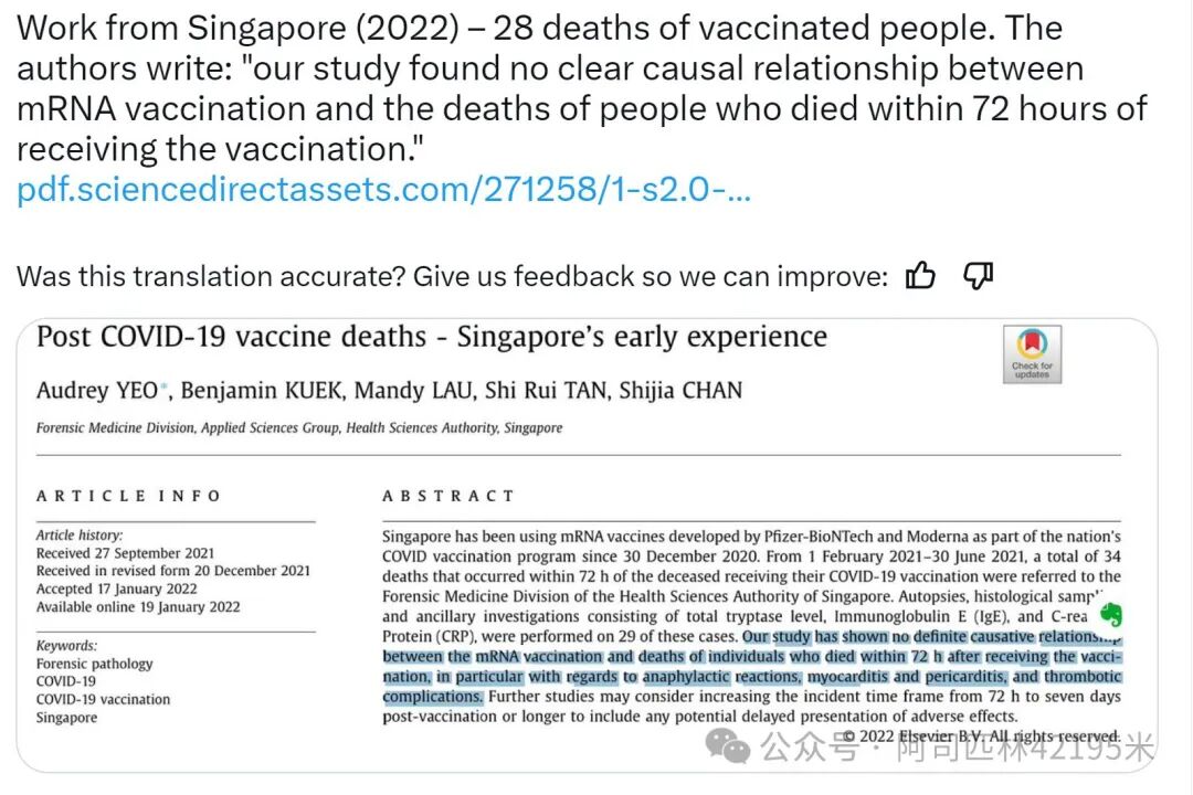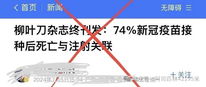 最近,一位辛辛苦苦把国外不实信息介绍给中国人民的活雷锋,发了一篇《柳叶刀杂志终刊发:74%新冠疫苗接种后死亡与注射关联》: